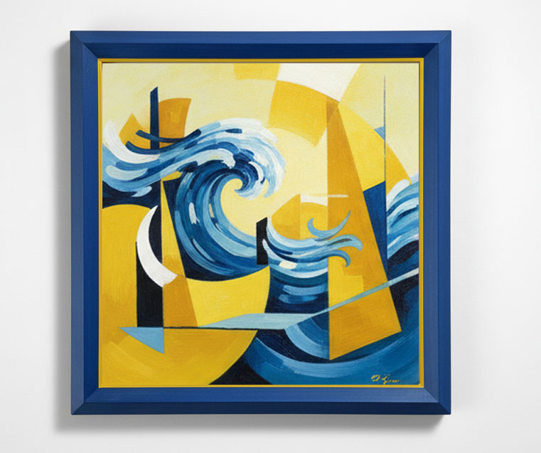 Bleu pierre filet jaune vif